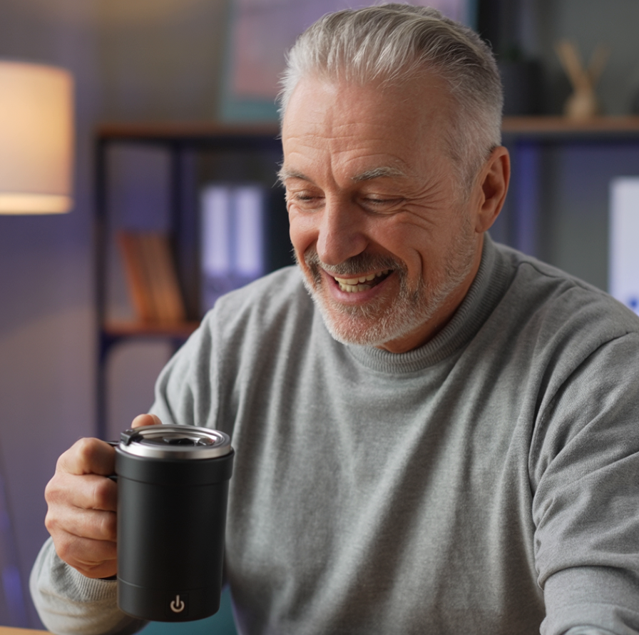 “Makes mornings so much easier.” Between getting the kids ready and heading to work, I never finish my coffee while it’s hot — until now. It keeps the perfect temperature and stirs everything for me. Small thing, big difference.