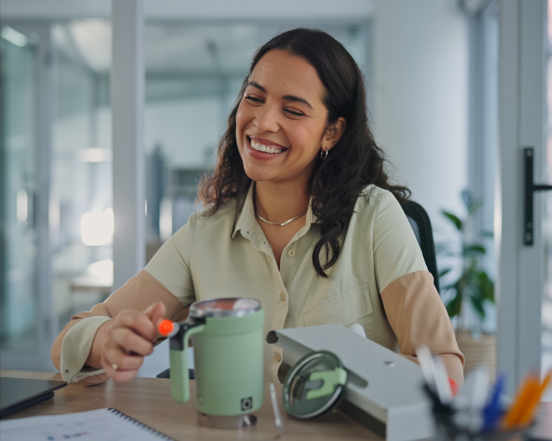 “Wish I’d bought it sooner.” Between work, errands, and the kids, my coffee always went cold. This cup actually keeps it hot and mixes in my creamer perfectly. It’s one less thing I have to think about in the morning.