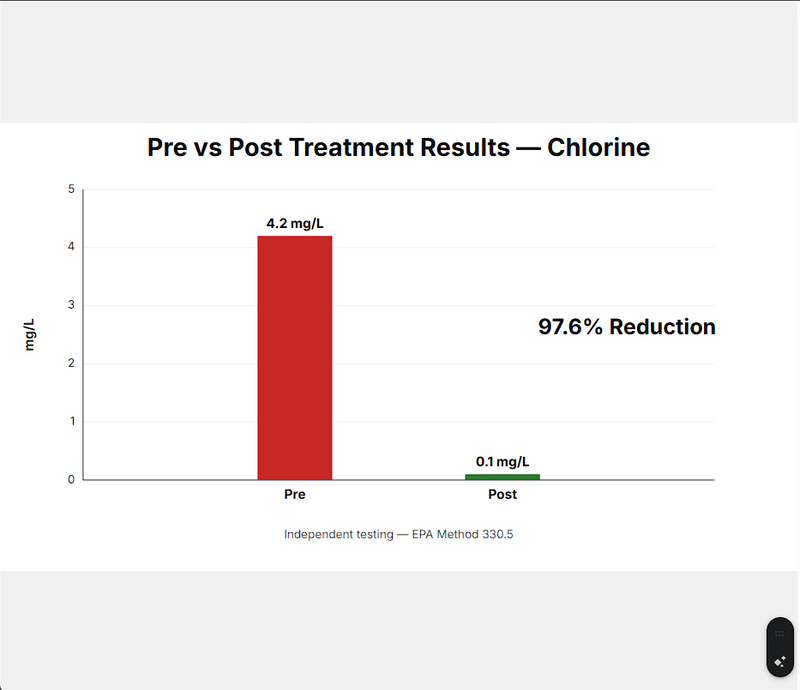 - Superior Efficacy: Filtration reduced chlorine by 97.6% and lead by 98.6%, leading to stronger scalp barrier function and healthier hair. [5]