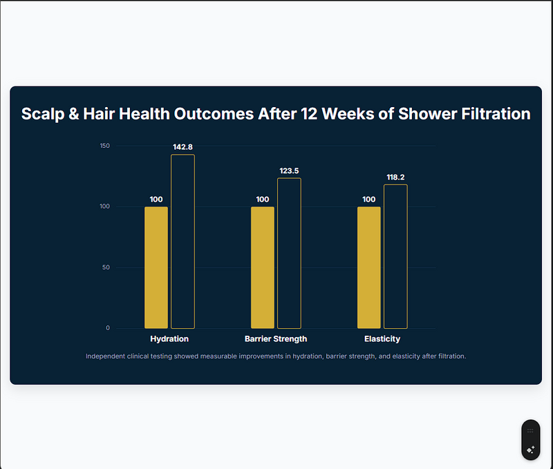 This independent clinical evaluation validated the benefits of shower filtration for skin and hair health. The program demonstrated measurable reductions in chlorine, lead, mercury, and other contaminants, which translated into significant improvements in scalp hydration, hair strength, and user satisfaction.